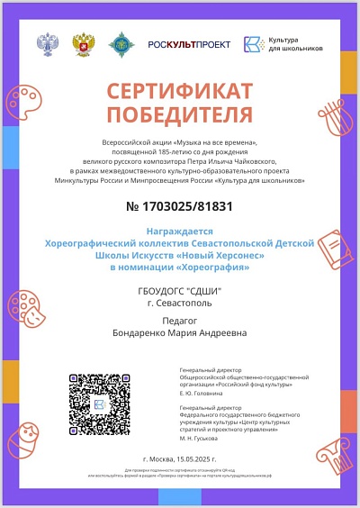 ГБОУДОГС «СДШИ» использует cookie для обеспечения функционирования веб-сайта, аналитики действий на веб-сайте и улучшения качества обслуживания. Для получения дополнительной информации Вы можете ознакомиться с условиями и принципами их обработки. Если Вы не хотите, чтобы эти данные обрабатывались, отключите cookie в настройках браузера.